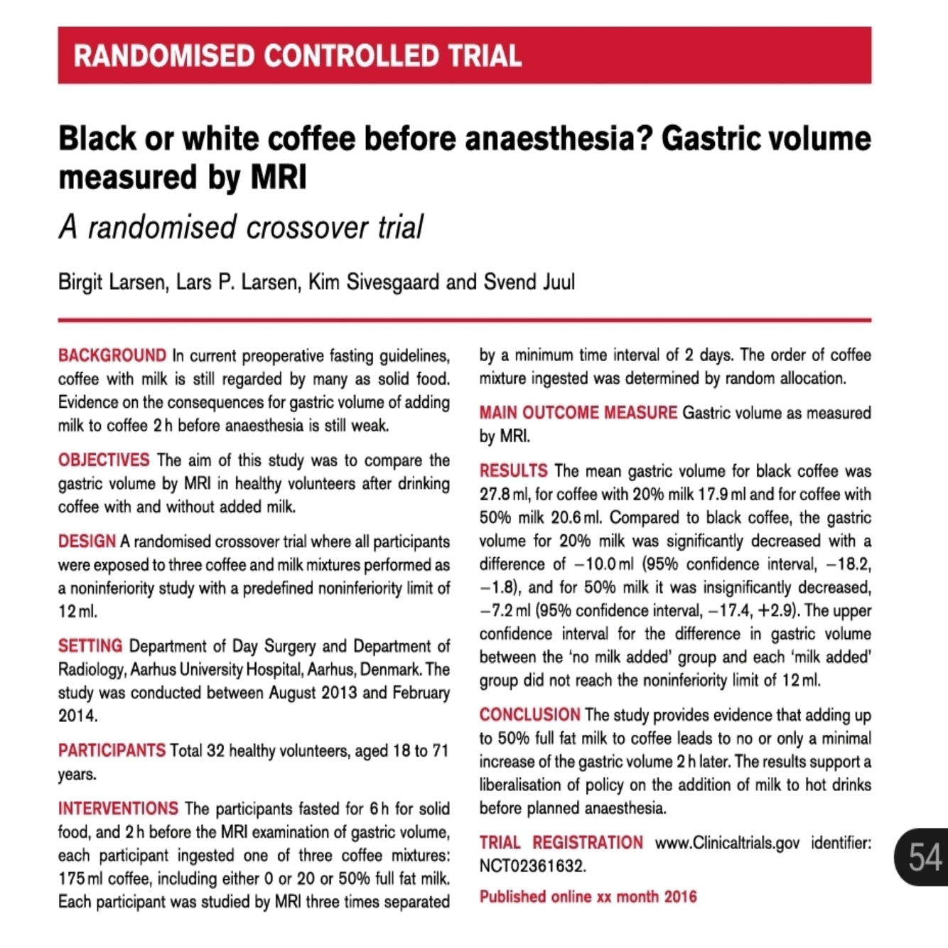 With the information available in this abstract, would you change your practice i.e. let patients have milk in their coffee 2 hours before surgery? List 3 reasons.