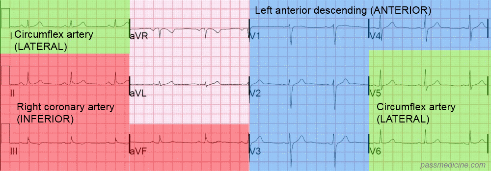 ST elevation in leads II, III and aVF