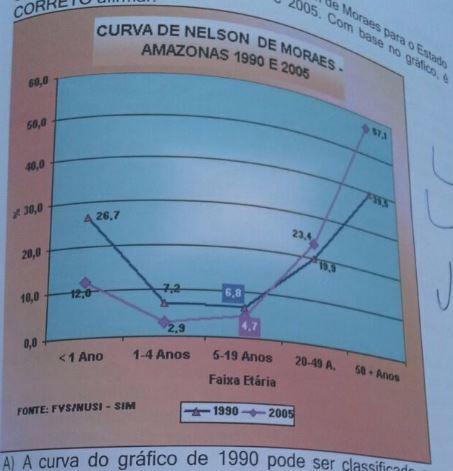 A ) A curva do gráfico de 1990 pode ser classificada como tipo II (nível de saúde baixo) e a curva do gráfico de 2005 de tipo III (nível de saúde regular).