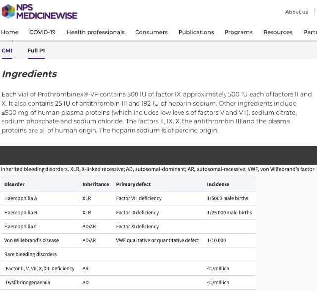 20.2 Prothrombinex VF is a factor concentrate. It is indicated for the management of bleeding caused by