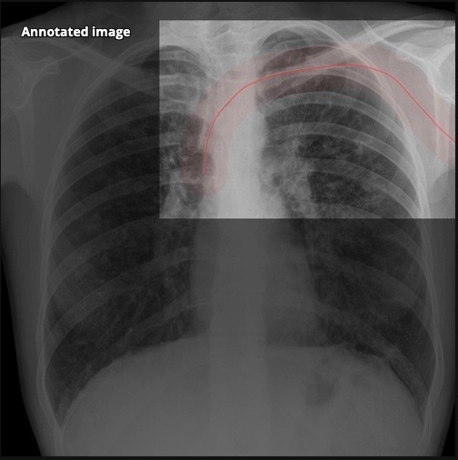 20.2 A 45-year old man has poor oxygenation in the post anaesthesia care unit after a low anterior resection. His chest x-ray is below. The most likely diagnosis is a. LLL collapse b. Pneumothorax c. L pleural effusion d. R bronchopneumonia