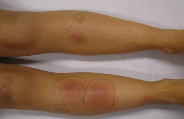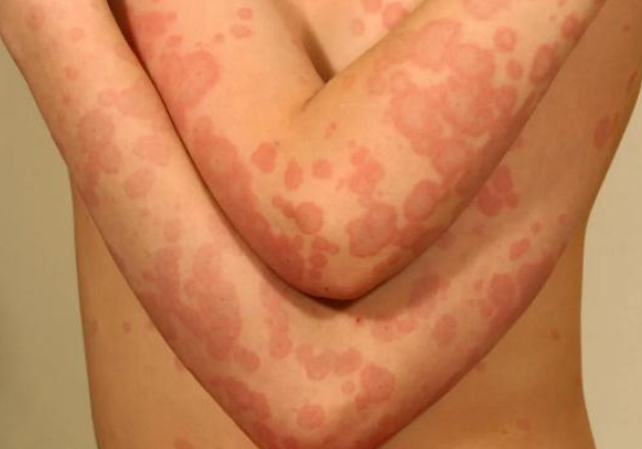 Patient who has been treated with doxycycline for a Community Acquired Pneumonia presents with the following rash on their arms.