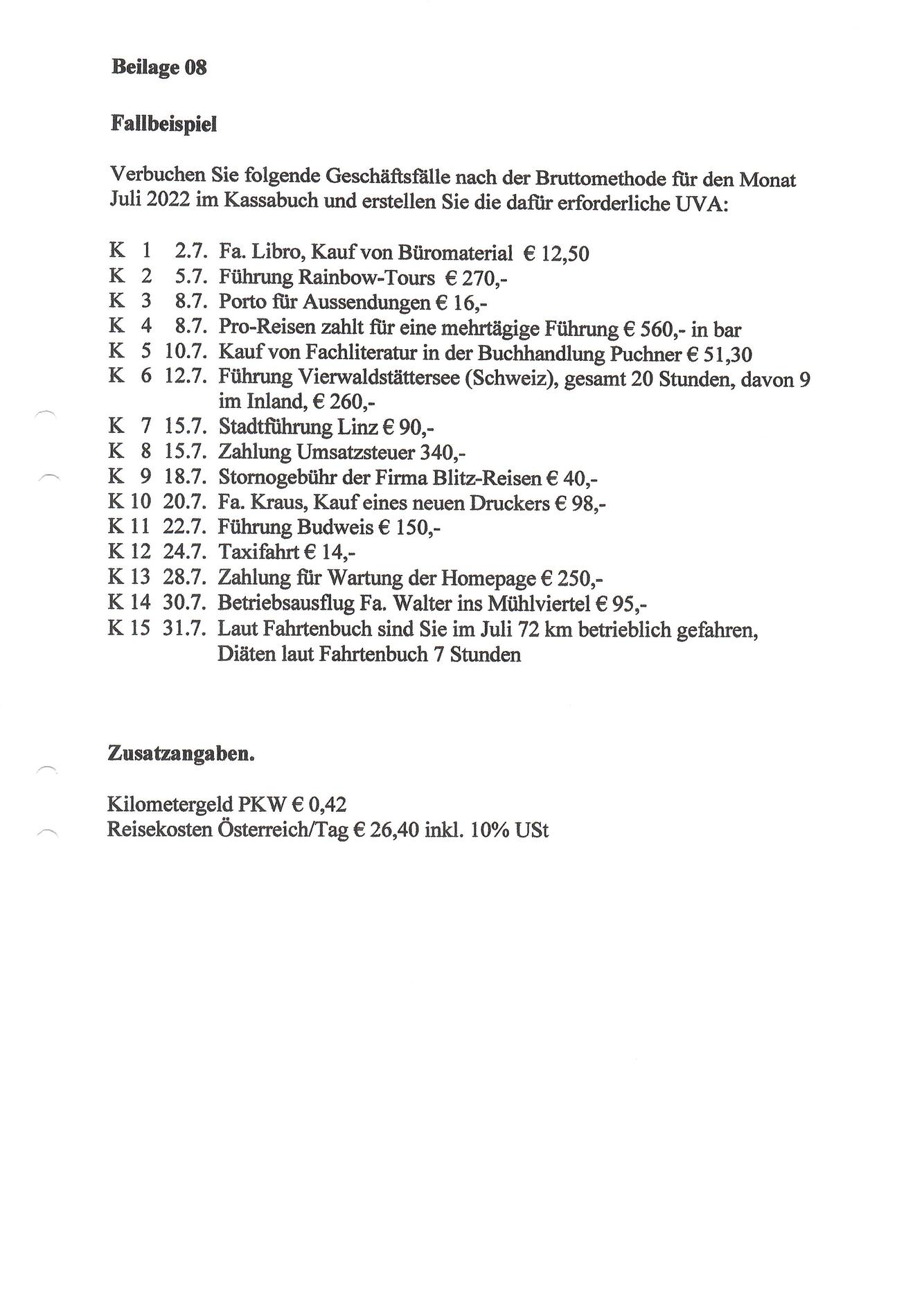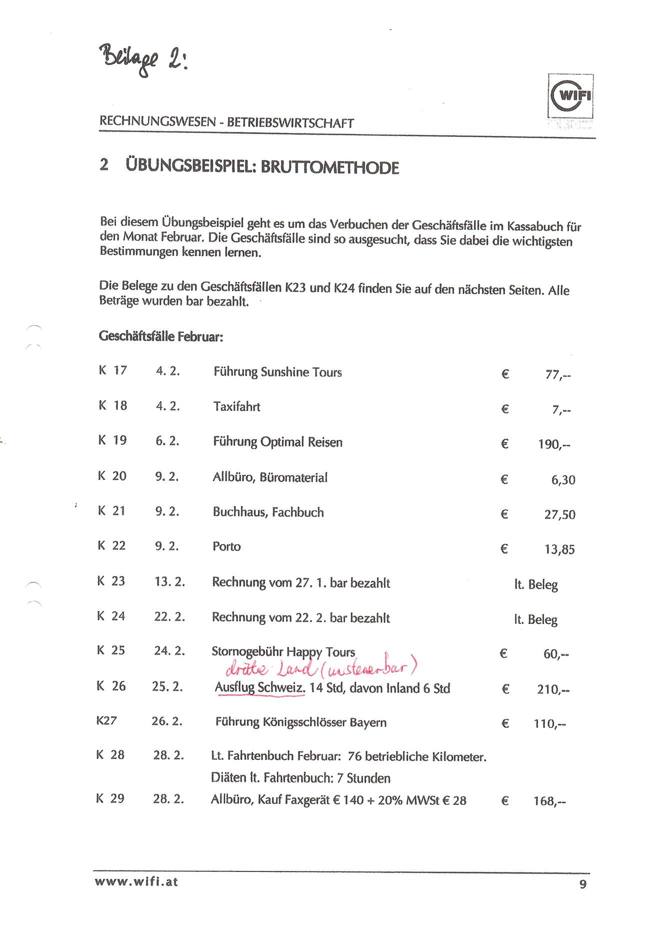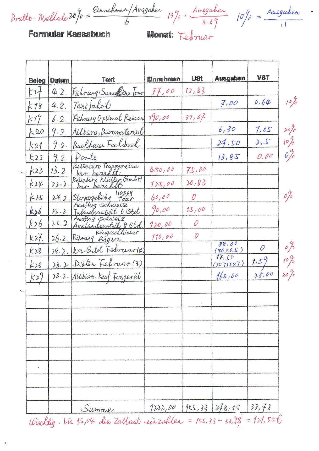 Kassabuch- Bruttomethode mit Beilage 2