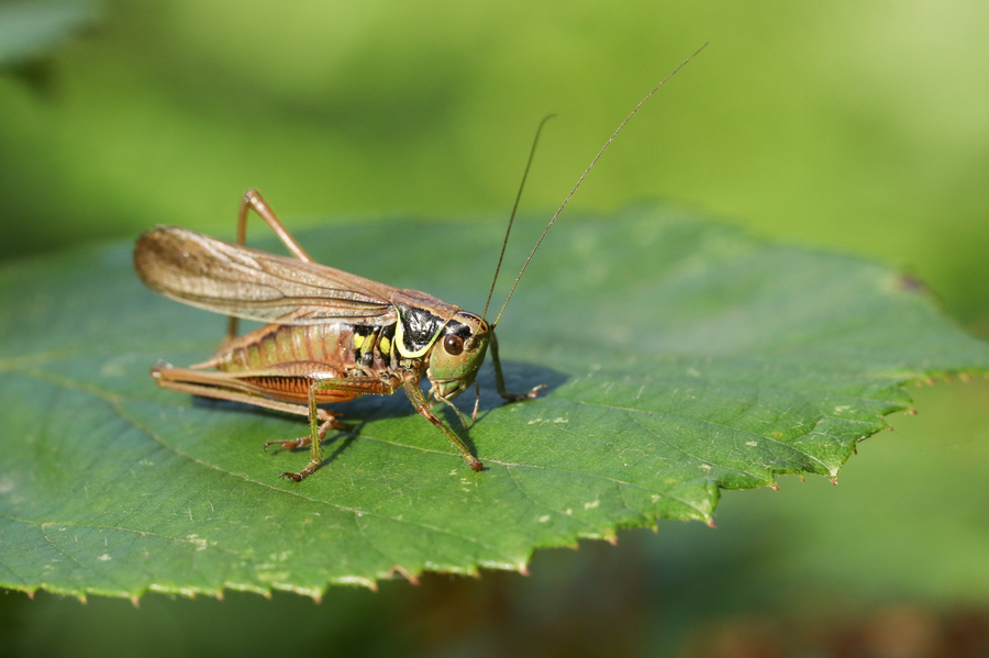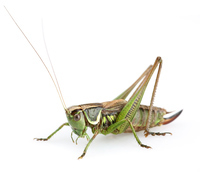 insect with long back legs, that can jump very high and that makes a sound with its legs