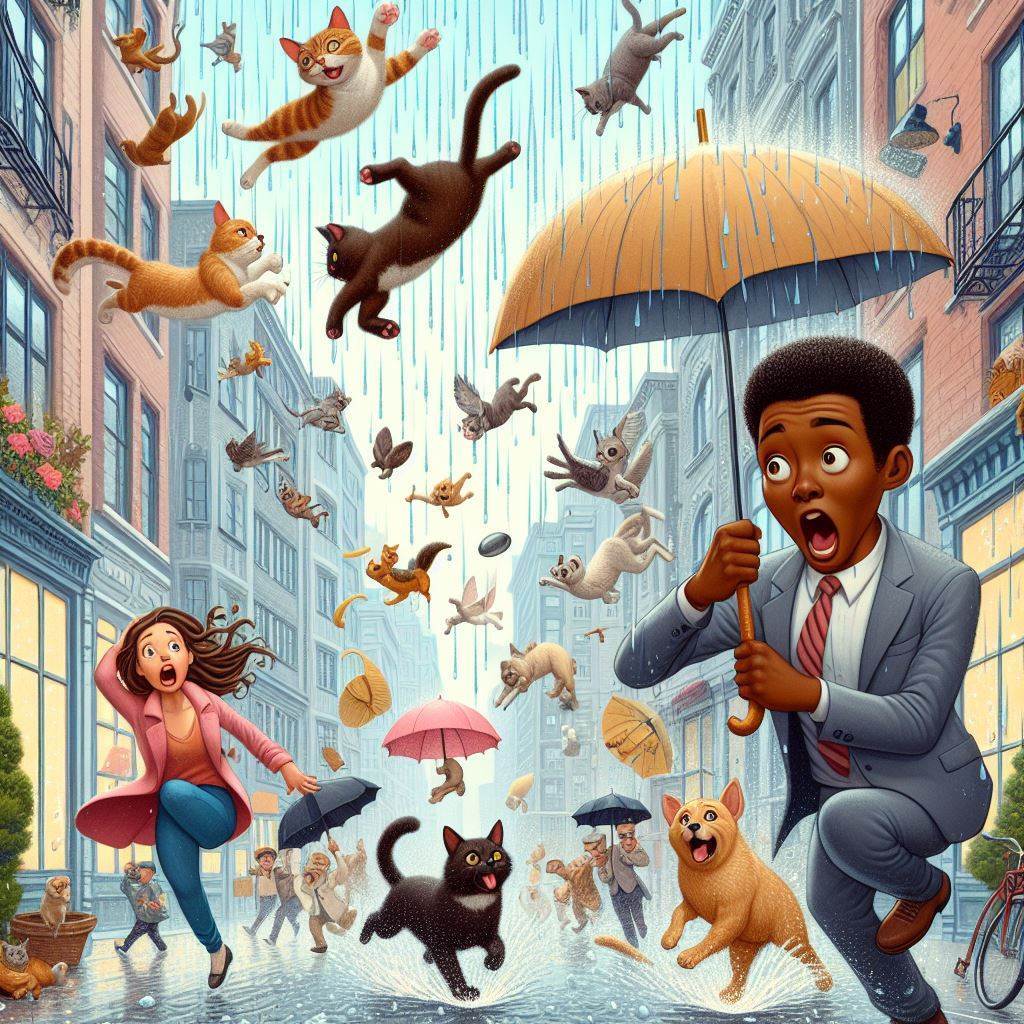 “I can’t believe it’s raining cats and dogs! My picnic is ruined!”