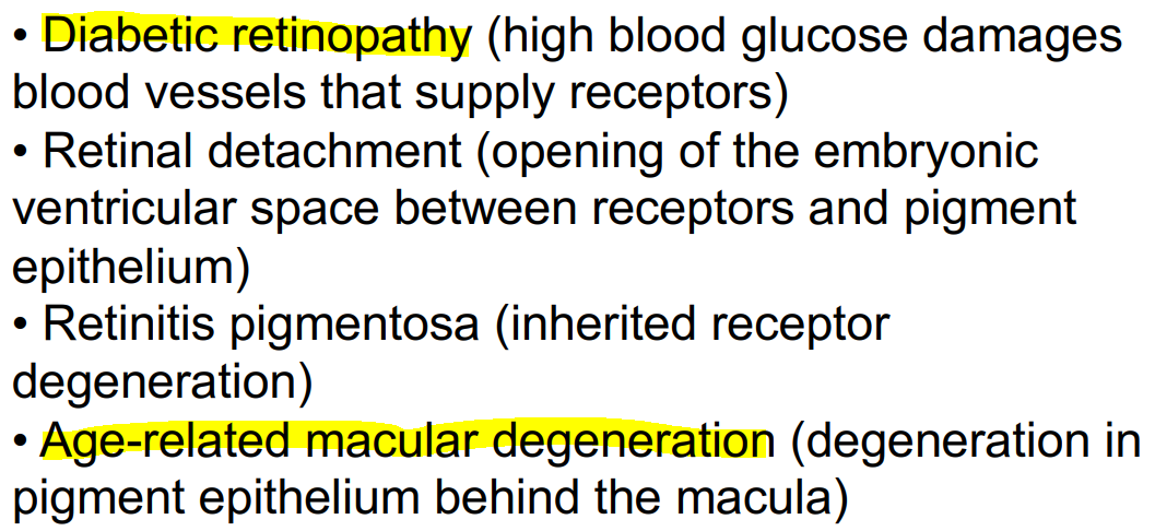 Give some examples of retinal disease.