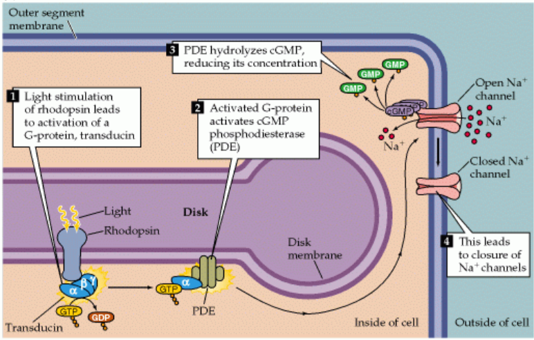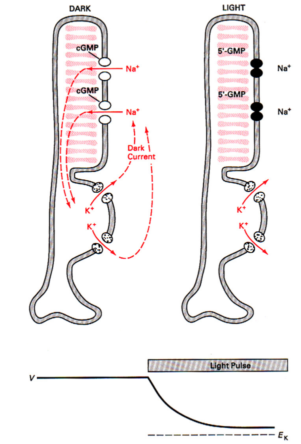 Light causes HYPERPOLARISATION of the photoreceptors:
