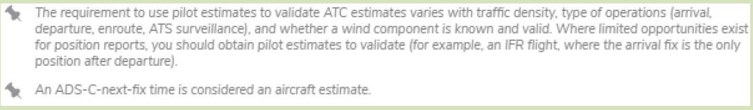 Base control decisions on ATC estimates and aircraft performance. Verify the estimate and aircraft performance using position reports over fixes, or as determined by radio aids, ATS surveillance, RNAV, or visual means that accurately define the position of the aircraft.