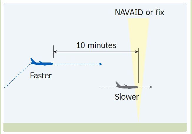Establish time-based longitudinal separation using one of the following methods: