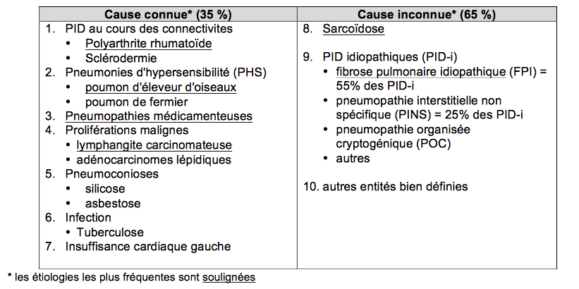 10 principales étiologies de PID sub-aigues / chroniques