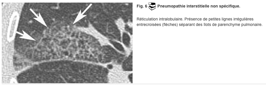 réticulations intralobulaires et rayon de miel dominant de topographie basale et corticale dans =>