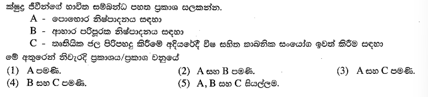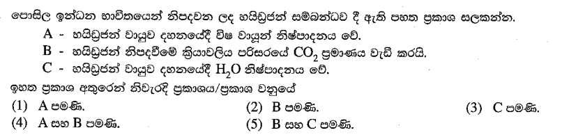 රසායනික කර්මාන්ත and ස්වභාවික නිෂ්පාදනPast Papers