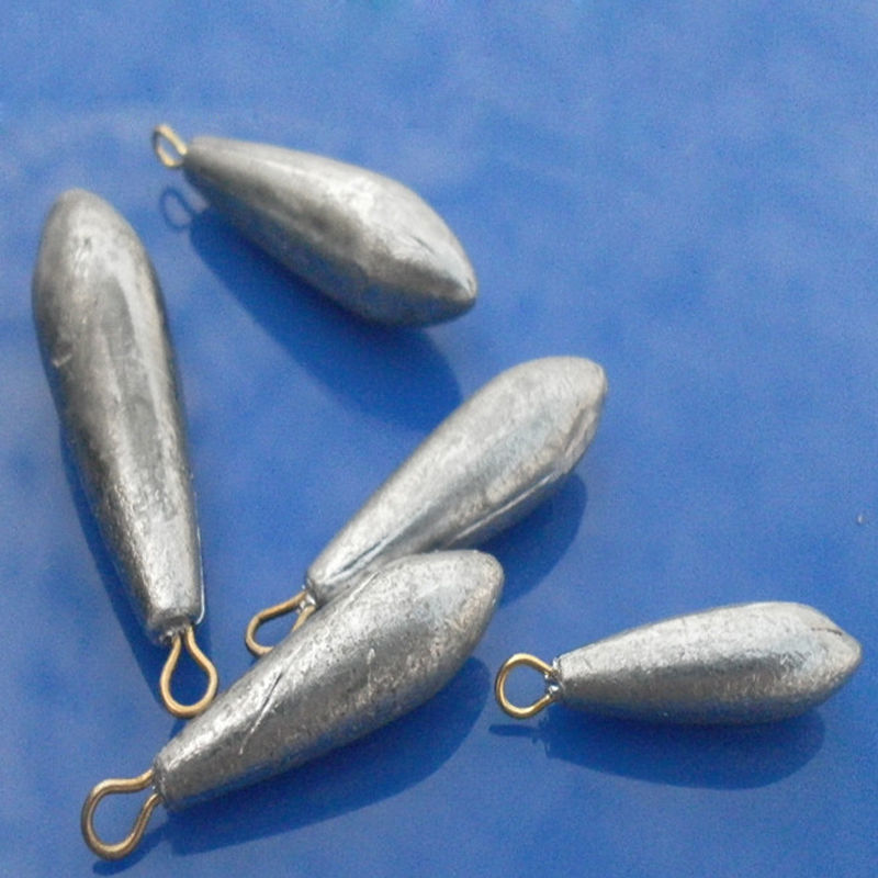 a weight attached to a fishing net or line to keep it under the water
