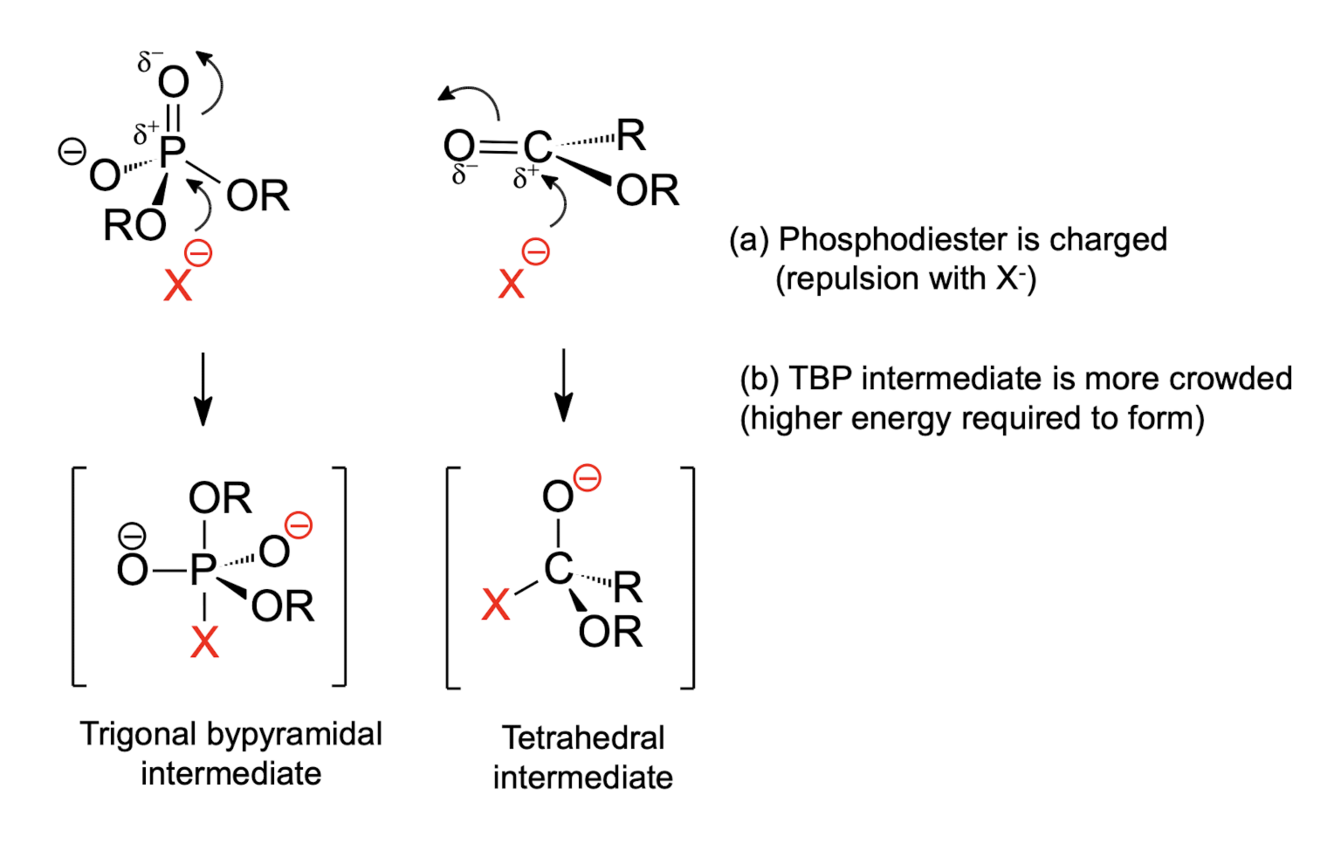 why are phosphate diesters hydrolysed more slowly than carboxylic acid esters?