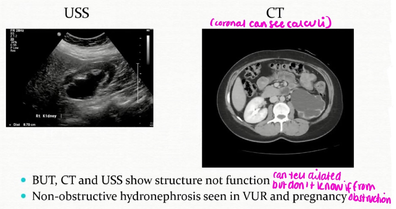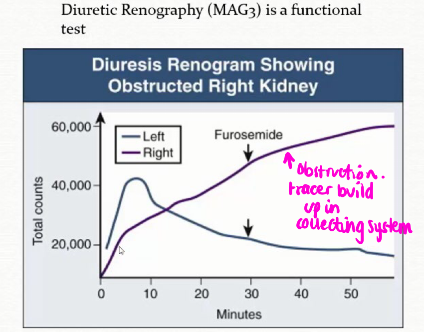 Apart from CT and ultrasound, how can we diagnose that a dilated kidney is due to obstruction?