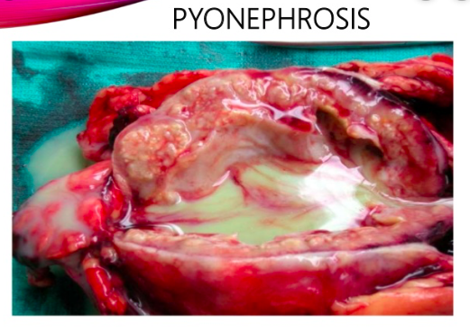 Infection of the kidneys’ collecting system due to obstruction. Pus collects in the renal pelvis and causes distension of the kidney. It can cause kidney failure and sepsis so treat like septic patient