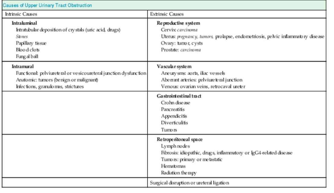 - Intraluminal: stones, sloughed papilla, clots