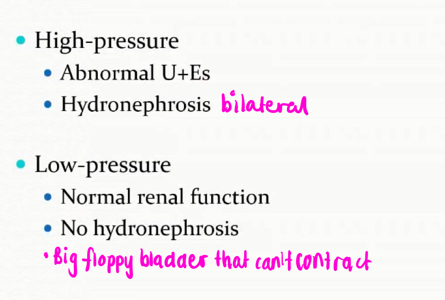 It is a cause of high pressure chronic retention and can get hyperkalaemia as reflux back into kidneys