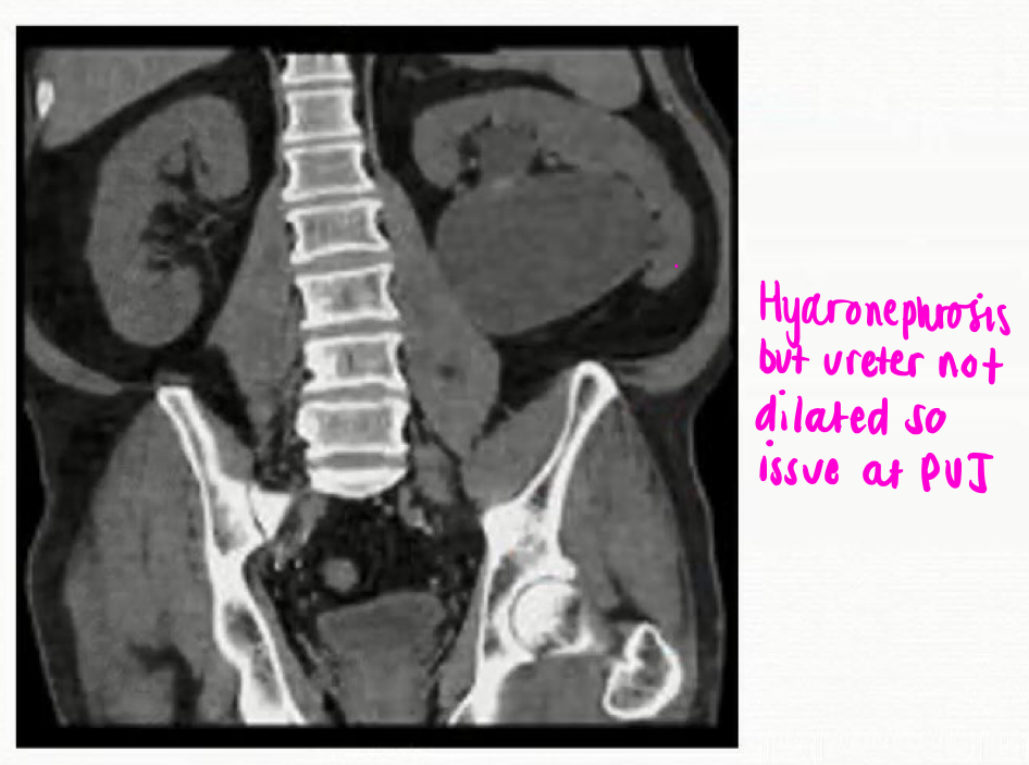 - Extraluminal: retroperitoneal malignancy and mets, retroperitoneal fibrosis, bladder cancer, prostate cancer