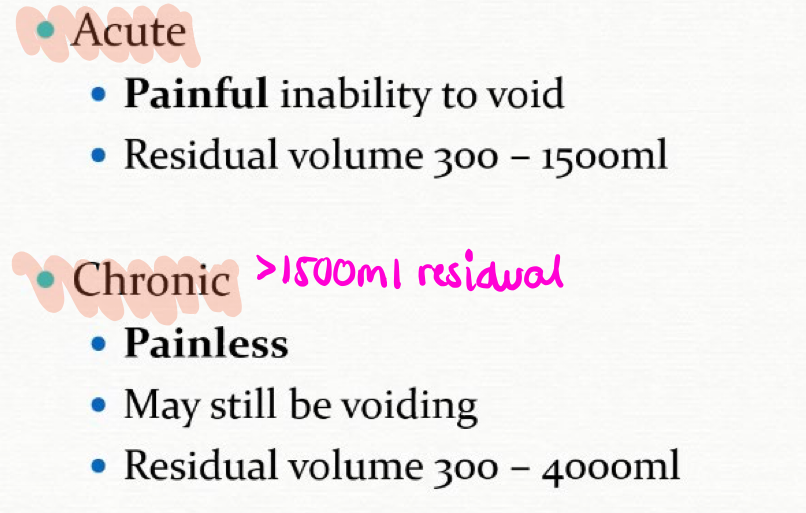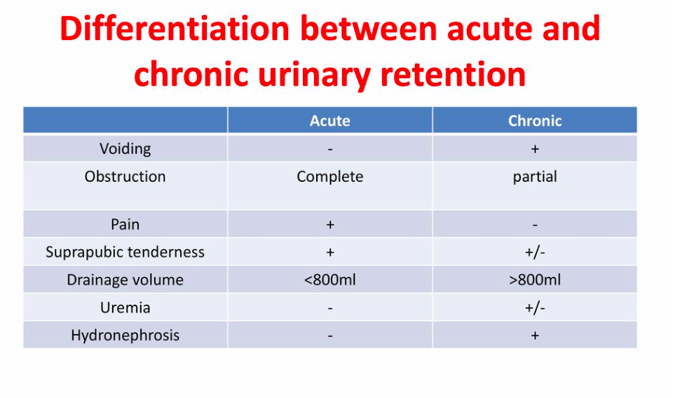 What is the difference between acute and chronic urinary retention?