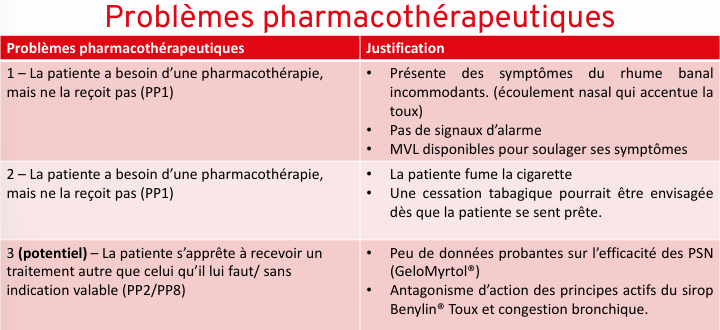 Est-ce que la condition de la patiente peut être prise en charge par le pharmacien?