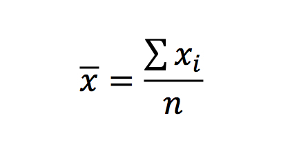 Sum of all data values divided by the number of values.