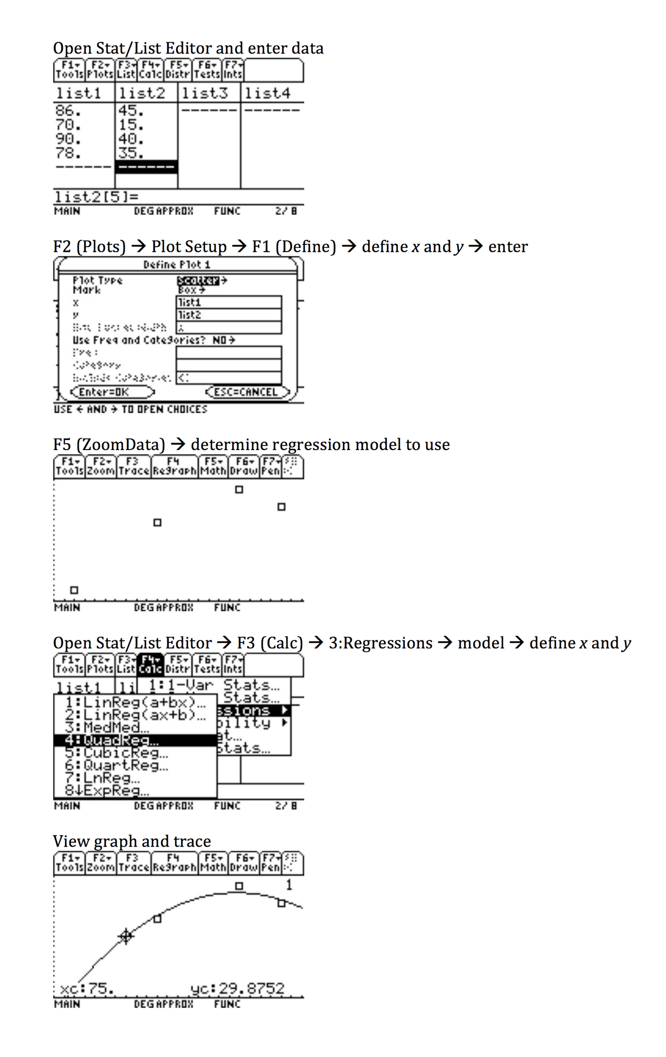 Regression on TI-89