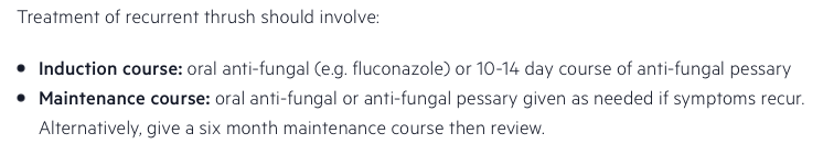 How is recurrent thrush treated? (4 or more episodes in one year)