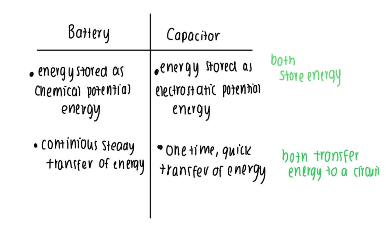 Compare a capacitor and a battery
