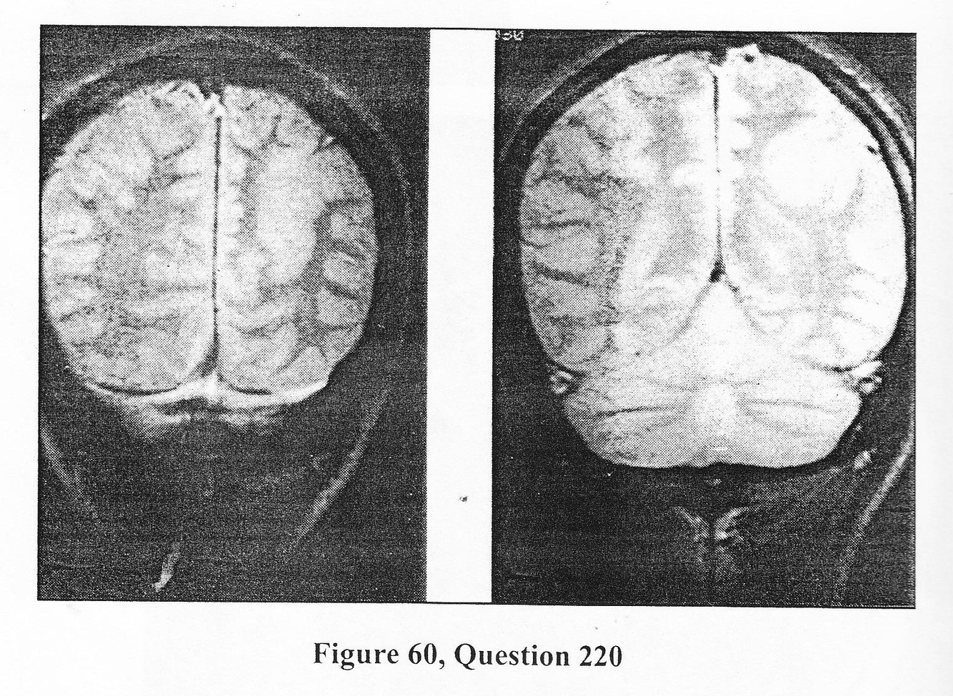A 15-year-old boy presents with progressively medically refractory epilepsy. Exam revealed a mild hemiparesis and hyperreflexia on the right but was otherwise unremarkable. The MR is depicted in Figure 60. 220. What is the MOST LIKELY diagnosis?