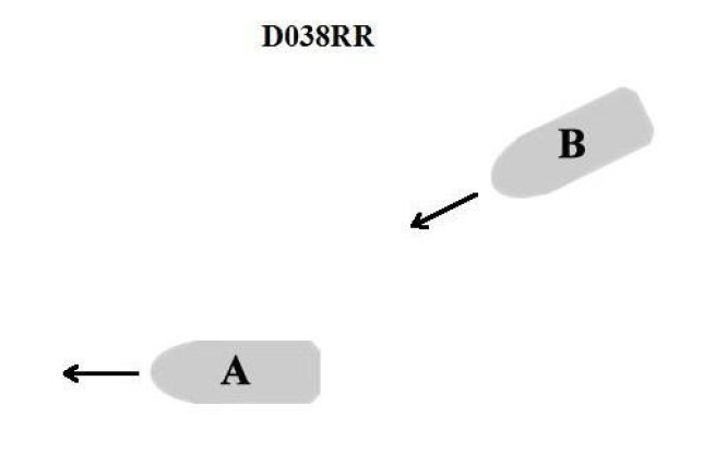 You are underway on vessel “B”approaching vessel “A” as shown in illustration D038RR below. You areunable to see any sidelights on vessel “A”. What type of situation is this?