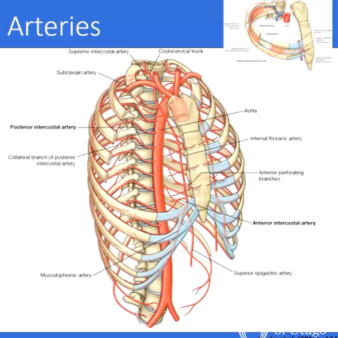 Anterior and posterior intercostal arteries - where are they derived from, flow list.