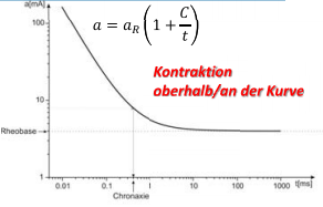 Im Falle eines Muskel-Nerven Präparates kann eine Erregung durch einen einzelnen Reiz zu einer Kontraktion als Antwort der Muskelzelle auf den elektrischen Reiz führen. Die Möglichkeit der Erzeugung einer Kontraktion hängt von Reizdauer ab.