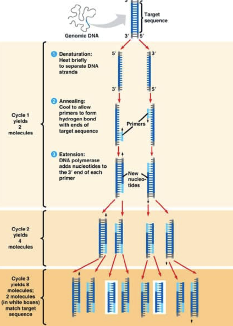 annealing: reaction is cooled and primers bind to the complementary sequence