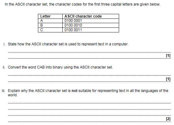 iii) ASCII uses 8 bits…