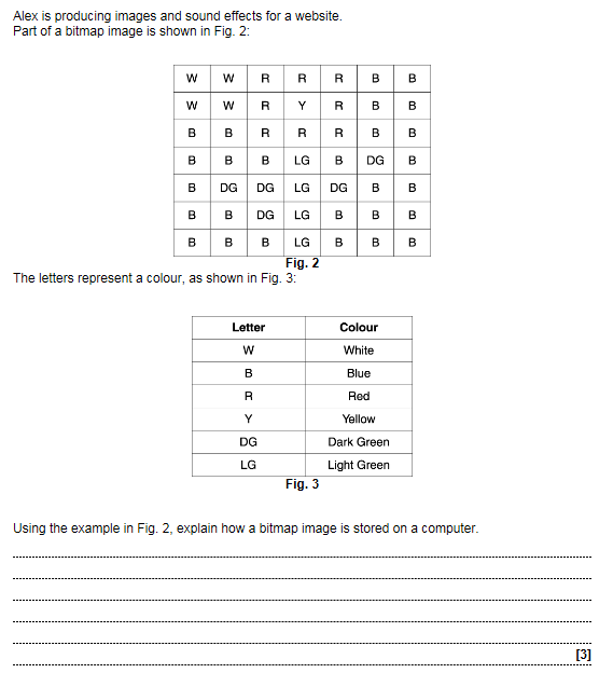 E.g. White = 000, Red = 010, Blue= 110, top line would be 000000010010010110110
