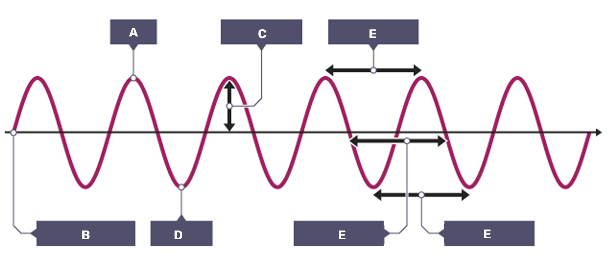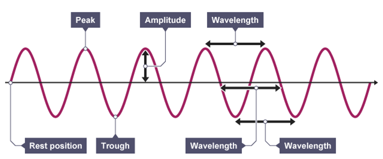 wavelength, amplitude, frequency