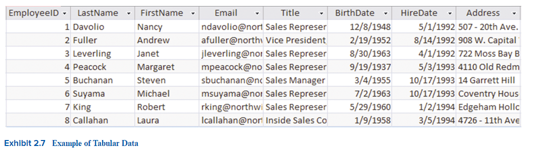 Example of Tabular Data