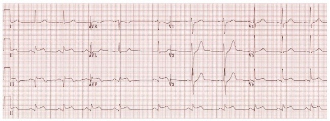22.1 A 74-year old man complains of chest pain. An electrocardiograph is performed and displayed here. The occluded coronary artery could be the