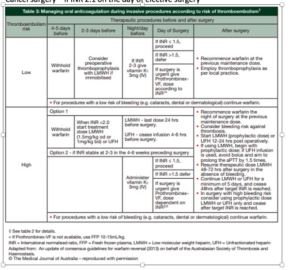 Give 3mg of Vitamin K and re-check on day of surgery proceed if INR <1.5 on DOS