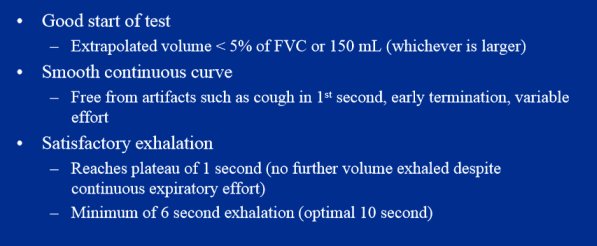 What is the American Thoracic Society Acceptability criteria for FVC?