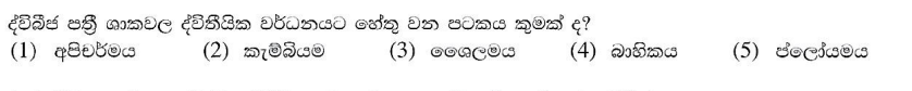 රසායනික කර්මාන්ත and ස්වභාවික නිෂ්පාදනPast Papers