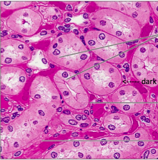 *look to see the two layers, thats how you know its not the simple cuboidal like those in kidney