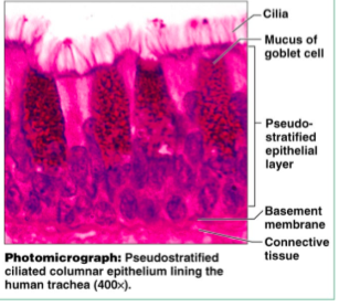 ciliated: lines trachea, most of upper respiratory tract