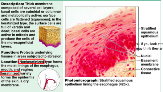 keratinized: forms epidermid of skin, dry membrane