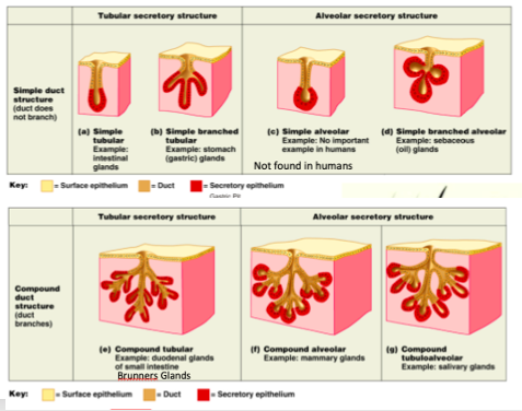 *some unicellular glands are along digestive tract mucosa and in brain (diffuse endocrine system)