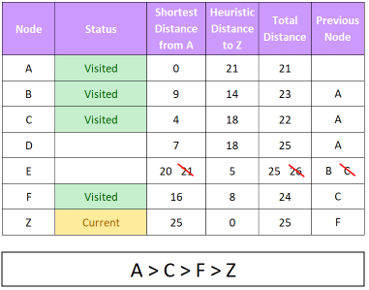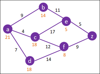 Perform A* on the following graph to find the shortest path between A and Z