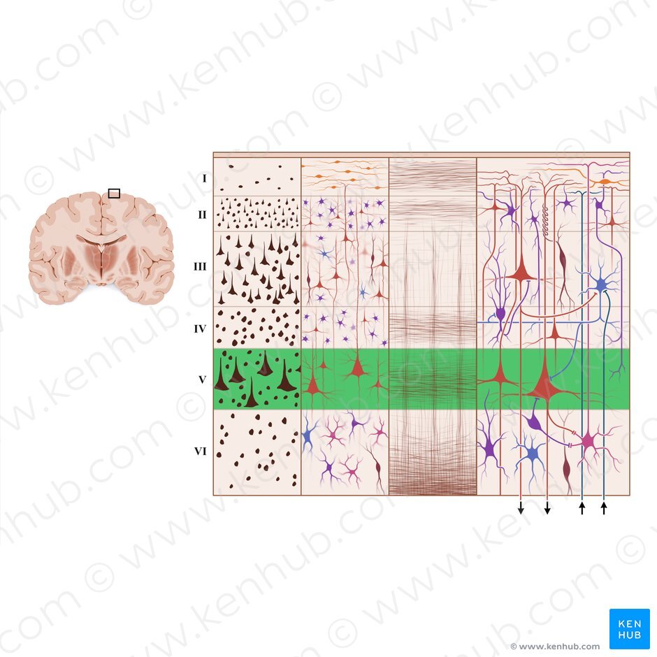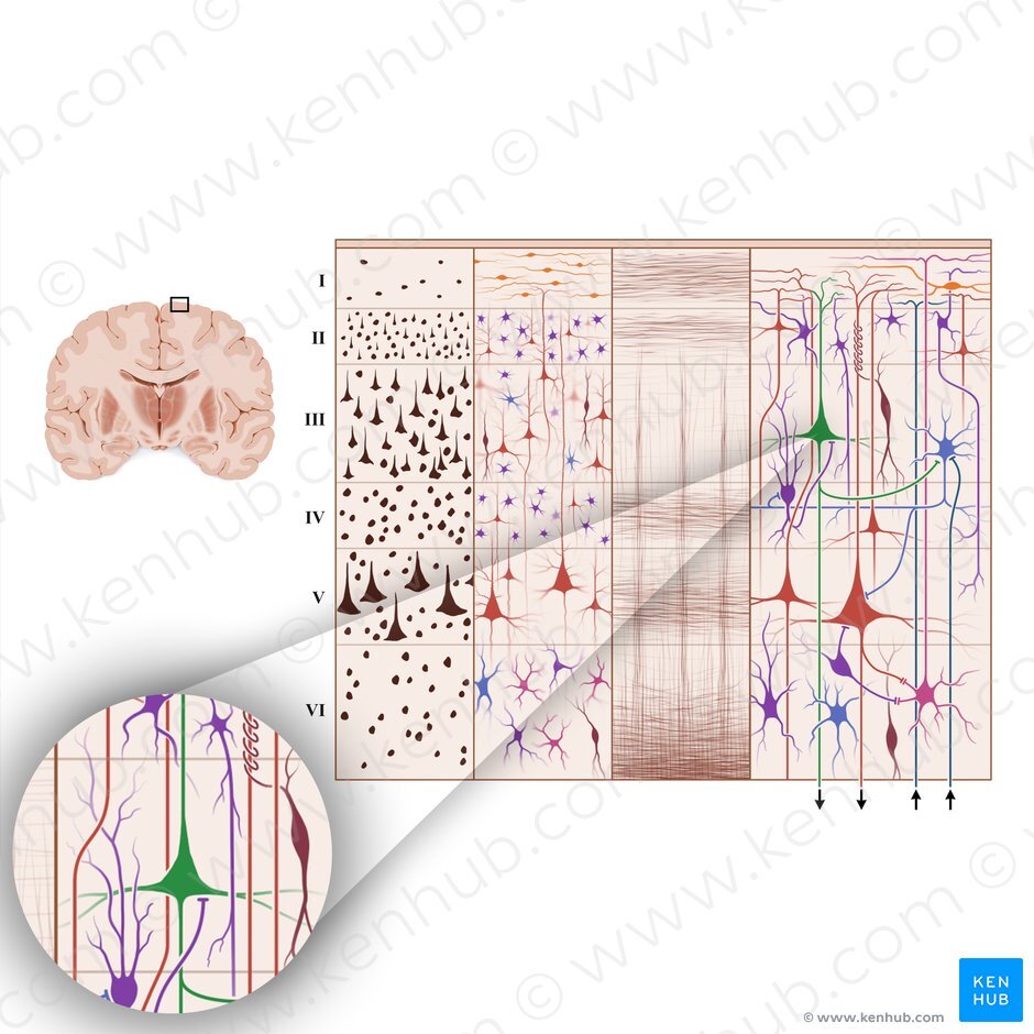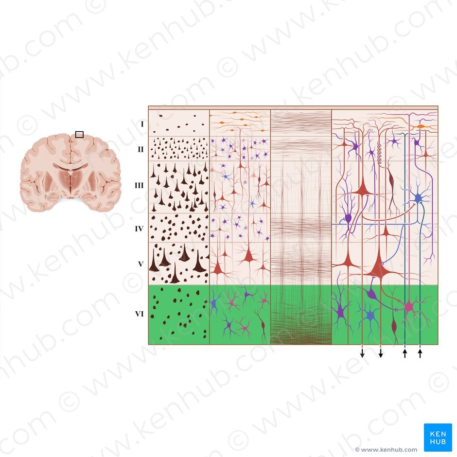 Largest part of the cerebral cortex containig six horizontal layers of grey matter