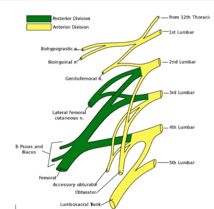 The nerve labelled with an arrow in the diagram below (diagram of lumbar plexus shown) is the