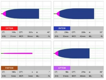 A bleeding patient has ROTEM results including (ROTEM results shown). The most
